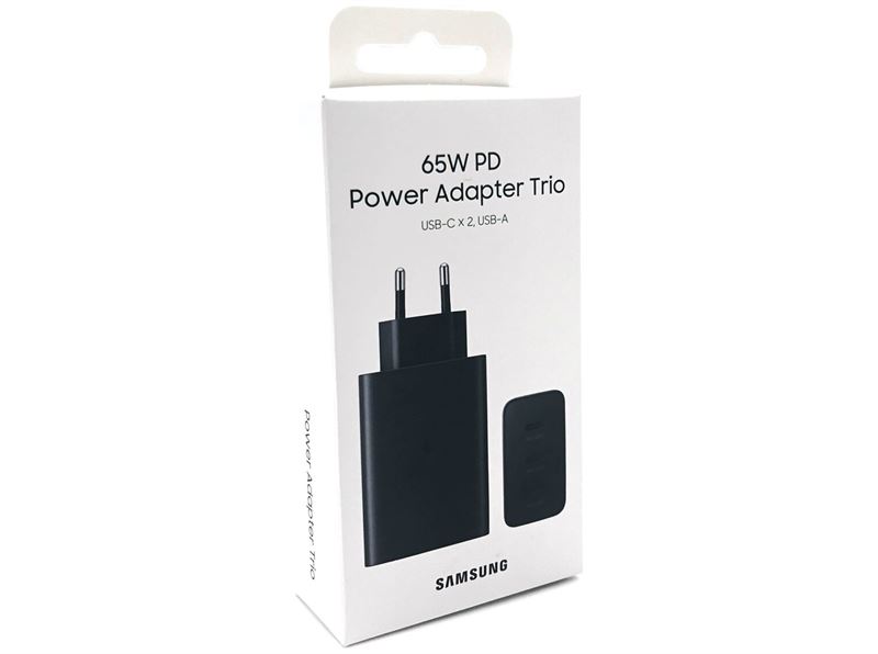 Samsung EP-T6530 - Strømforsyningsadapter - 65 Watt - 3 A - PD 3.0, SFC 2.0 - 3 output-stikforbindelser (USB, 2 x USB-C) - sort